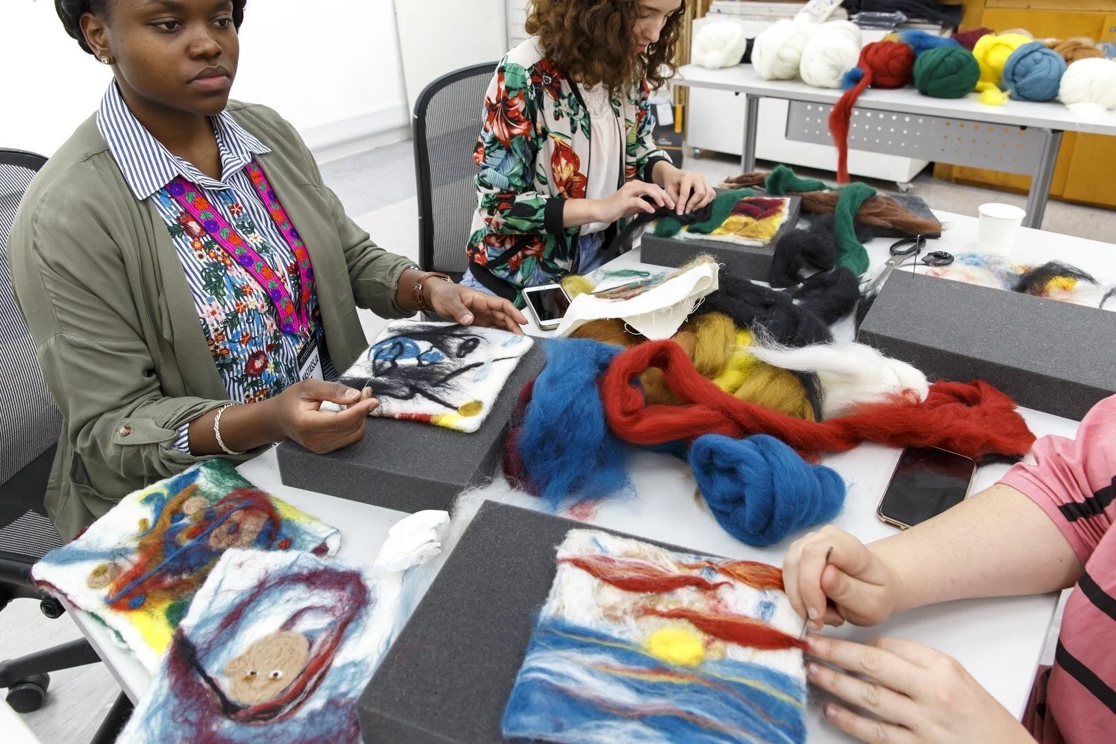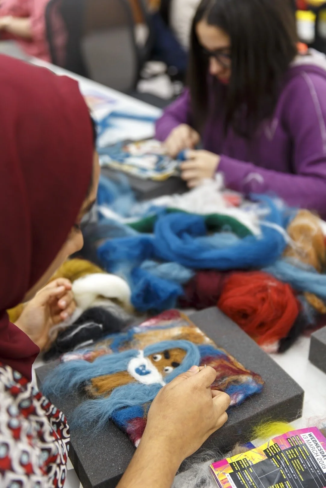 I put together a 2-day workshop that invited participants to create a handmade storybook using wool as the material. And it was a blast! Day 1 consisted of wet felting our “pages” so that the Day 2 folks could needle felt details on top. Check out some of the images from this insanely collaborative process.
